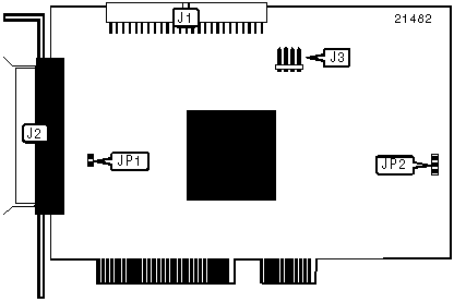 Note: Closing jumper JP1 sets active termination so it is always on. The setting is used when the adapter shares the SCSI bus with an adapter in another computer. If that computer can be turned off, closing the jumper will insure that active on-board termination is on all the time, regardless of whether power is applied or not. | |||