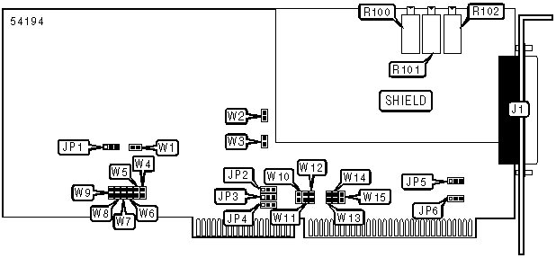 A total of 64 base address settings are available. The jumpers are a binary representation of the decimal memory addresses. W9 is the Most Significant Bit and switch W4 is the Least Significant Bit. The switches have the following decimal values: W9=512, W8=256, W7=128, W6=64, W5=32, W4=16. Turn off the switches and add the values of the switches to obtain the correct memory address. (Close=1, Open=0)
