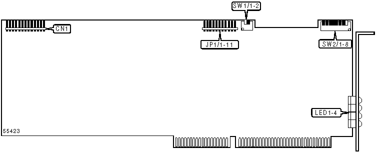 Note: A total of 255 base address settings are available. The switches are a binary representation of the decimal memory addresses. SW1/8 is the Most Significant Bit and switch SW1/1 is the Least Significant Bit. The switches have the following decimal values: SW1/8=32768, SW1/7=16384, SW1/6=8192, SW1/5=4096, SW1/4=2048, SW1/3=1024, SW1/2=512, SW1/1=256. Turn off the switches and add the values of the switches to obtain the correct memory address. (Off=1, On=0) | |||||||