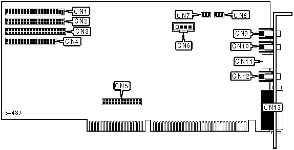 CD-ROM interface (3), game port, IDE interface, waveblaster connector, line in, line out, microphone, MIDI connector