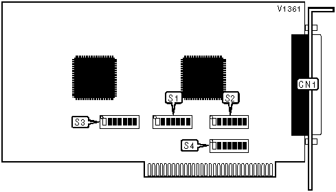Note: A total of 128 base address settings are available. The switches are a binary representation of the decimal memory addresses. S1/7 is the Most Significant Bit and switch S1/1 is the Least Significant Bit. The switches have the following decimal values: S1/7=2048, S1/6=1024, S1/5=512, S1/4=256, S1/3=128, S1/2=64, S1/1=32. Turn off the switches and add the values of the switches that are off to obtain the correct memory address. (Off=1, On=0)