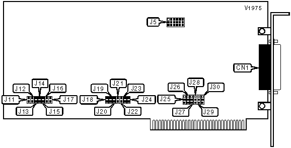 Note: A total of 127 base address settings are available. The jumpers are a binary representation of the decimal memory addresses. J17 is the Most Significant Bit and jumper J11 is the Least Significant Bit. The jumpers have the following decimal values: J17=512, J16=256, J15=128, J14=64, J13=32, J12=16, J11=8. Open the jumpers and add the values of the open jumpers to obtain the correct memory address. (Open=1, Closed=0)