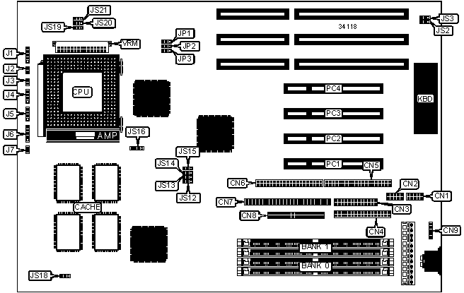 Note: Board accepts EDO memory. Board also accepts x 32 SIMMs.
