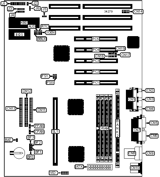 Note: Board accepts EDO memory. The location of banks 0 & 1 is unidentified. | |||