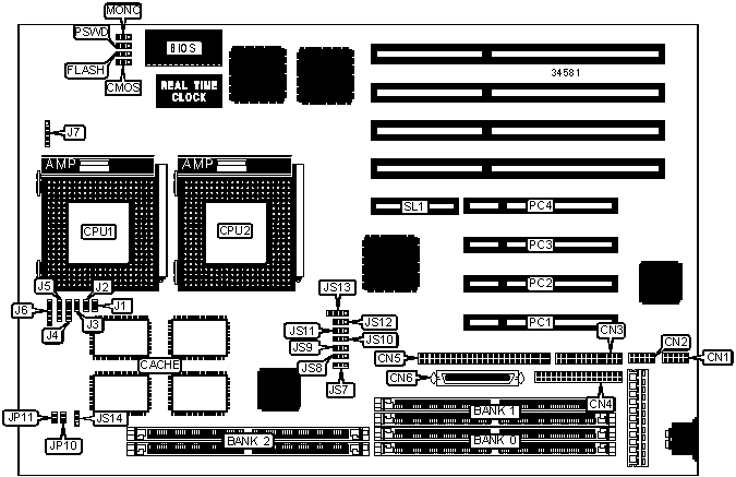 Note: Board accepts EDO memory. Board also accepts x 32 SIMMs.