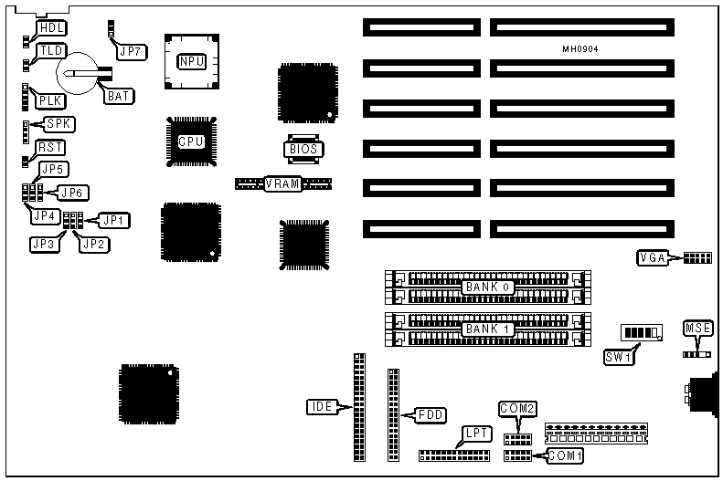 Note:The on-board VGA interface will not function with less than 1MB of DRAM installed