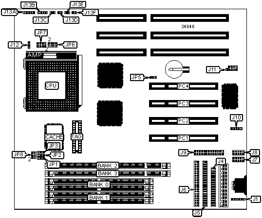 Note: Board accepts EDO memory. Do not install SIMMs & DIMMs at the same time.