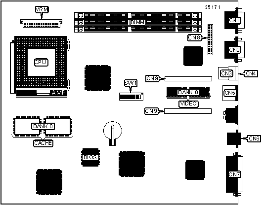 Note: 2MB video memory is factory installed and is not configurable. To increase to 4MB, install upgrade module at CN9.