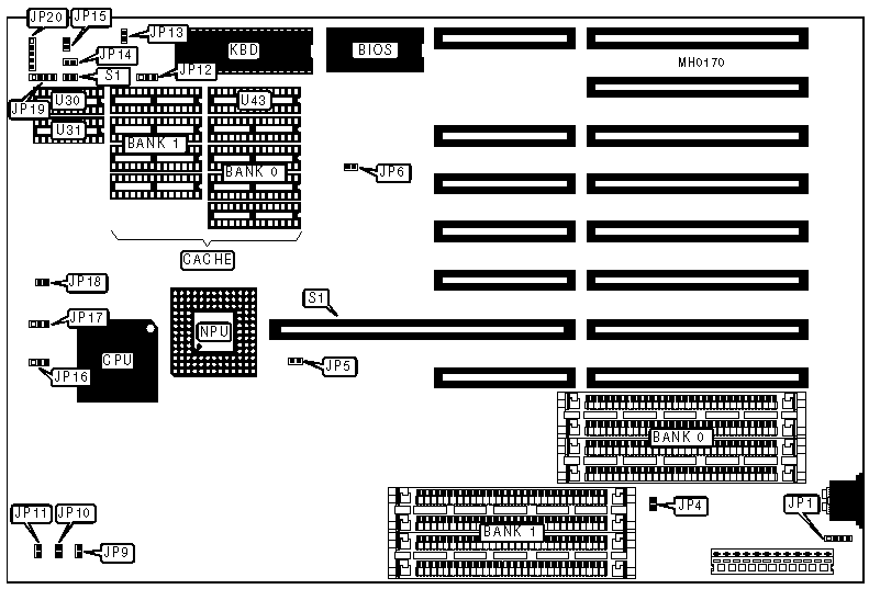 Note:Pins designated should be in the closed position. Location of JP8 is unknown. | ||||||