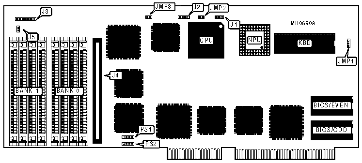 Notes:J1 connects to J7 on the main board. PS1 & PS2 connect to PS2 & PS3 on the main board when an NPU is installed. | |||