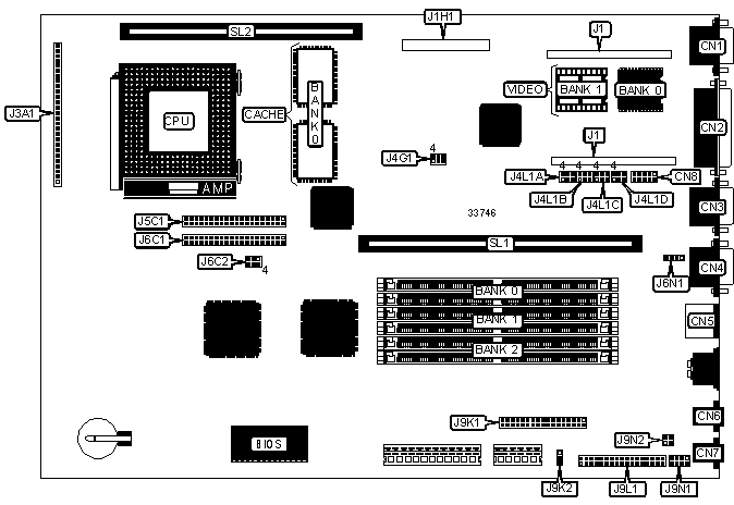 Note: Bank 0 is factory installed and is not configurable. There are 2 sockets for J1.