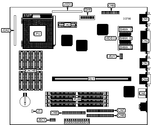 Note: Board also accepts x 32 SIMMs. The location of banks 0 & 1 are unidentified.