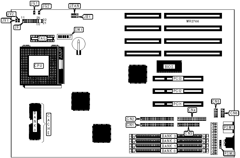 PS/2 mouse port, PS/2 mouse connector, parallel port, serial ports (2), IDE interfaces (2), floppy drive interface, green PC connector, 32-bit PCI slots (3) |
