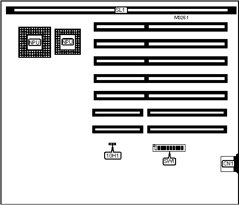 Note: 2MB memory is factory installed and is not configurable. The location is unidentified. To increase memory size, install memory card at SL1. |