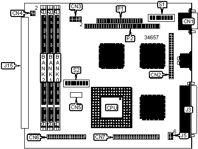 Note: Board is factory installed with 1MB of video memory. The location is unidentified.