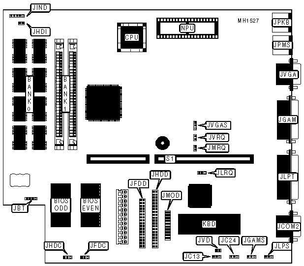 Note:* JMODJ is a special block placed on JMOD itself, connecting pins 10 and 11 together diagonally. Permanent damage to the board will occur if the JMODJ jumper is installed improperly. Pins designated should be in the closed position. |
