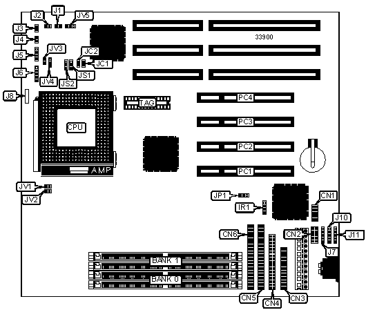 Note: Board accepts EDO memory. Board also accepts x 32 SIMMs. | ||