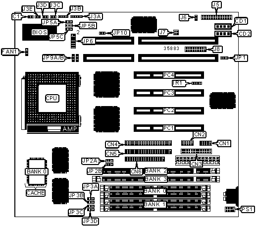 Note: Board accepts EDO memory.