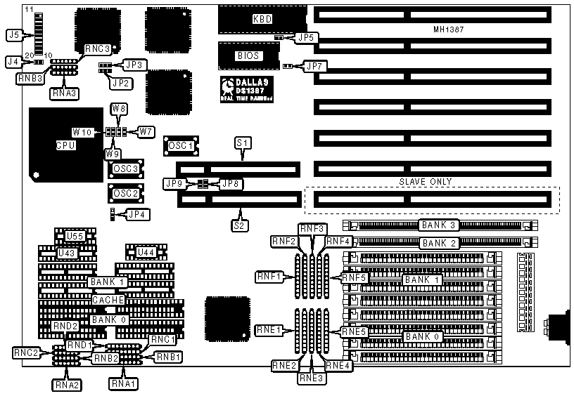Note:JP8 and JP9 are VESA bus speed select. W7 - W10 are clock source jumpers.