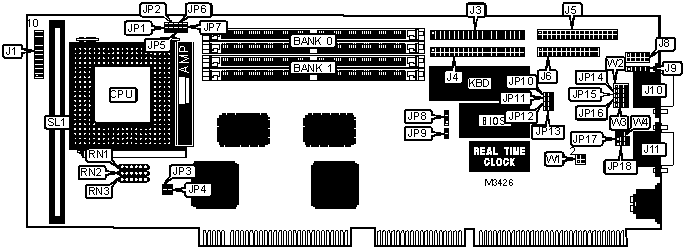 Note: Board accepts EDO memory. Board also accepts x 32 SIMMs. | ||