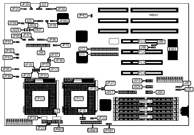 Note: Board accepts BEDO/EDO memory. Board also accepts x 32 SIMMs.
