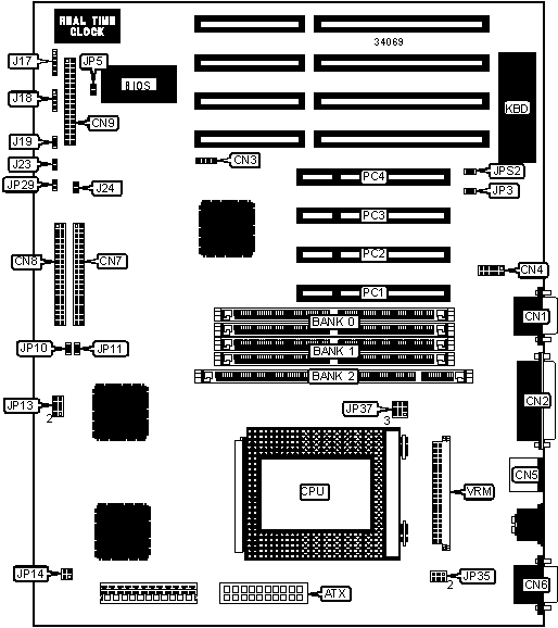 Note: Board accepts EDO memory. Board also accepts x 32 SIMMs. Banks 0 & 1 are interchangeable.