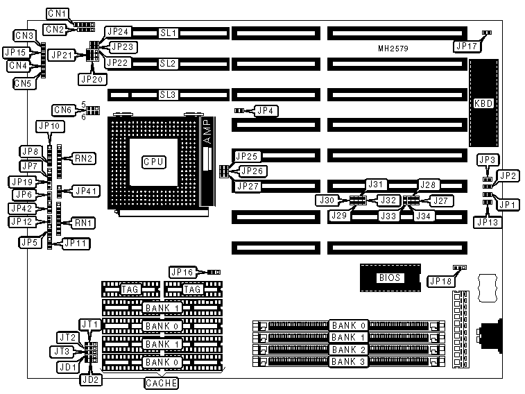 Note: The location of jumpers JP9, JP28, JP29, JP30 & JP31 are unidentified.