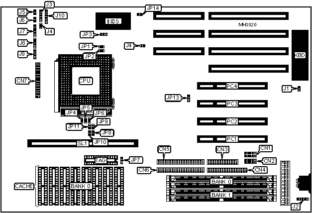 Note: If SL1 is filled, Bank 0 must remain empty. If SL1 Is used, only one of the four types of cache can be installed. | |||