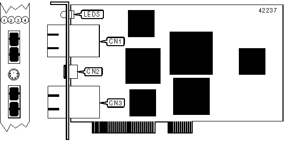 Note: When the 5511 is either powered up or reset, the SMT processor automatically performs a series of onboard diagnostics. If the diagnostics complete successfully, LED4 (Error LED) will go to Off. If the diagnostics complete unsuccessfully, LED4 will remain on indicating processor initialization failure, and the adapter will be inoperational. | |||
