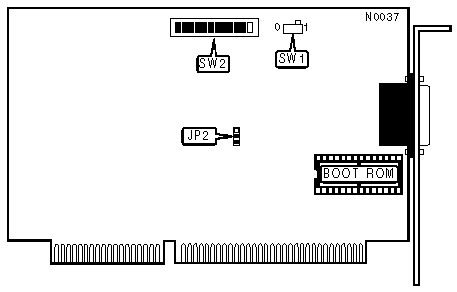 Note 1 :If the NIC is installed into an XT-type PC or the 8-bit expansion slot of an AT-type PC, the programmed I/O transfer method is automatically used regardless of the switch settings. This setting does not apply when running under OS/2. | ||||