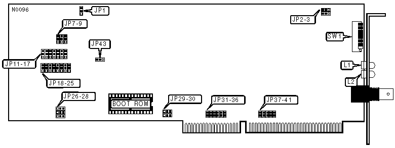 Note: When JP9 has pins 1 & 2 closed, the buffer size is 128KB, rather than 8KB. Use this setting when experiencing difficulty with fast AT-class machines. |