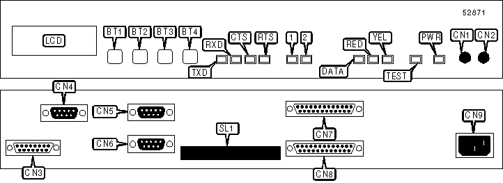 TXD, RXD, CTS, and RTS LEDs indicate status of data port 1