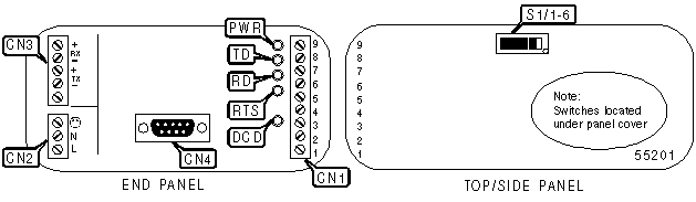 DCE serial port (9 pole terminal block) |