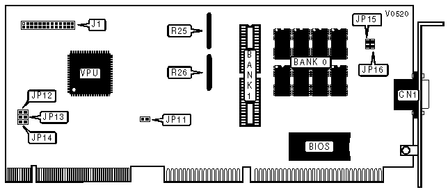 Note:If terminating resistors R25 and R26 are oriented horizontally, then the 512K x 8 VRAM chips are Bank 0.