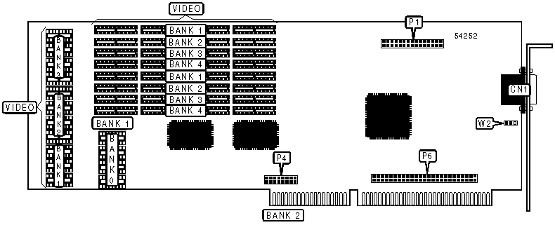 Note: Board comes standard with 512KB of VRAM video memory & and is upgradeable to 1MB video memory. Board has 128KB of DRAM video memory & is upgradeable to 512KB video memory. The location & chip sizes are unidentified.